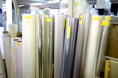 | 塩ビシート | 屋内サインや屋外サインで広く使われているメディア。 粘着の種類や使用期間にも短期〜長期と種類があり、用途に合わせて使用している。 |